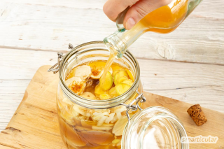 - Während dessen die Deckel von den Gläsern 5 Minuten kochen , rausnehmen und trocknen lassen.