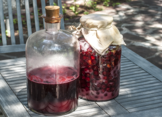 4. Durch ein Sieb gießen, eventuell noch filtern, in schöne Schmuckflaschen abfüllen und genießen. Der Likör gewinnt noch durch längere Lagerung. Er enthält ca. 20 % Alk.