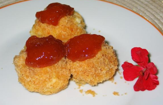In einer Pfanne Butter zum Schmelzen bringen und den Zucker und die Semmelbrösel darin leicht bräunen. Vorsicht, nicht verbrennen lassen. Die fertigen Knödel in der Pfanne mit den Bröseln rollen, sodass sie eine Bröselkruste bekommen. Sofort warm mit Marmelade servieren. Am besten passt Hagebuttenmarmelade (Hetschenpetsch), gut geht auch Aprikosenmarmelade.
